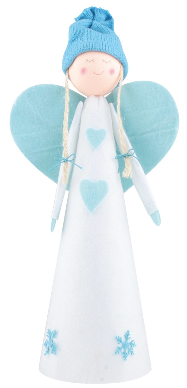 Vdechněte svému domovu kouzelnou atmosféru s naším modrobílým andělem z filcu! Tento půvabný dekorativní kousek je ideální nejen jako ozdoba během vánočních svátků, ale i jako radostný doplněk do jakéhokoli interiéru.