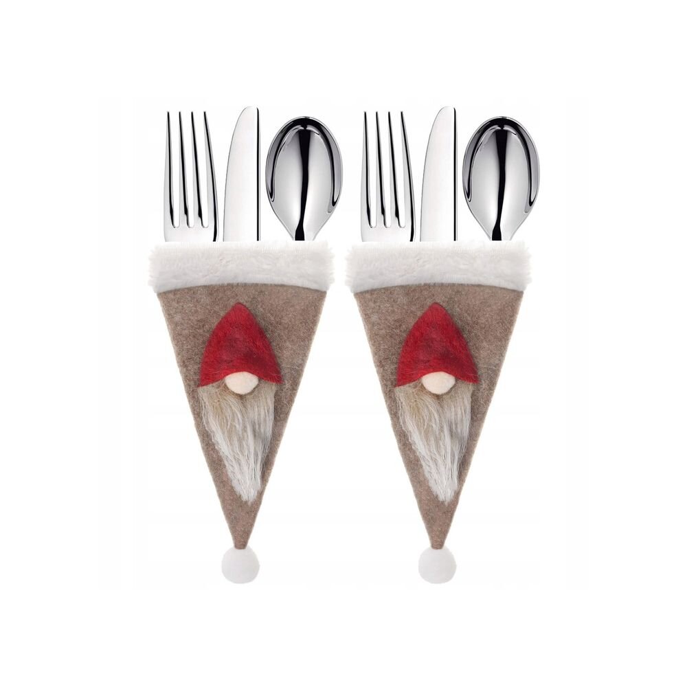 Sada dvou obalů na příbory s motivem vánoční čepice se skřítek Gnomem. Plastický vzor skřítka, čepice zakončená bambulí. Stylová a elegantní dekorace svátečního stolu. Rozměry 18x10 cm.