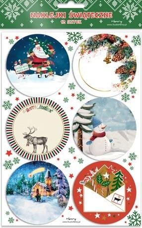 Zestaw naklejek na prezenty Mikołaj z elfami