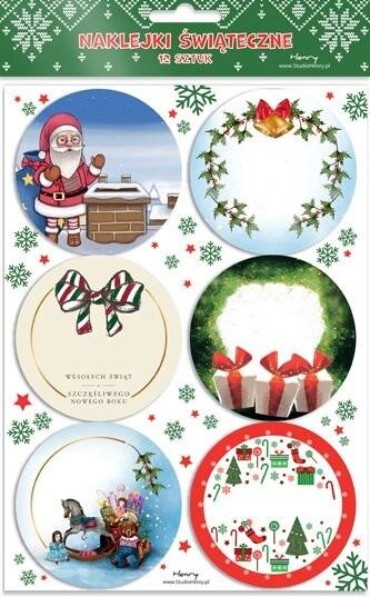 Zestaw naklejek na prezenty Mikołaj na dachu