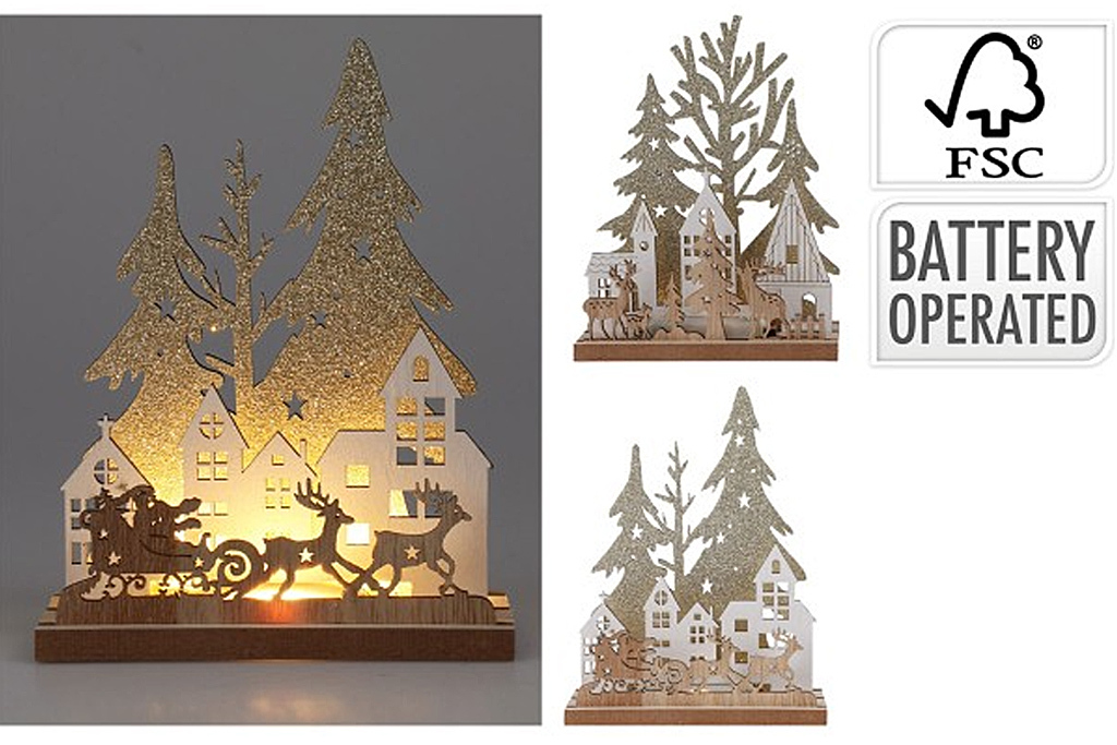 Ozdobte svůj domov během svátků tímto nádherným svítícím dřevěným domkem se stromy. Každý domek je vyroben z kvalitního dřeva a má rozměry 15 x 12 cm, což ho činí ideálním doplňkem pro vánoční dekoraci. K dispozici jsou 2 různé varianty, které vám zašleme náhodně podle aktuální skladové dostupnosti. Tento elegantní svítící domek přinese do vašeho interiéru útulnou a slavnostní atmosféru.