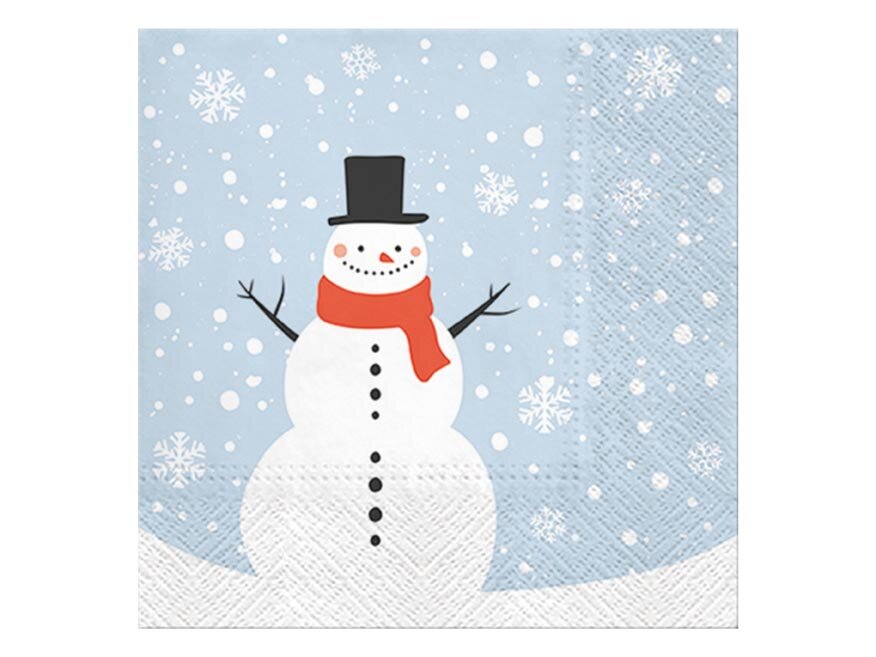 Papírový vánoční ubrousek ve světle modré barvě. Ubrousek je kvalitní z třívrstvého papíru s motivem sněhuláka. Vytvořeni decentní vánoční atmosféry stojí na maličkostech. I taková drobnost, jako vánoční ubrousky změní ráz vašeho stolování.