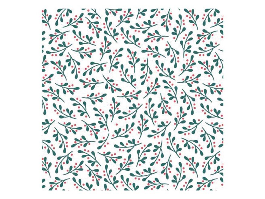 Papírový vánoční ubrousek. Ubrousek je kvalitní z třívrstvého papíru s motivem jmelí. Vytvořeni decentní vánoční atmosféry stojí na maličkostech. I taková drobnost, jako vánoční ubrousky změní ráz vašeho stolování.