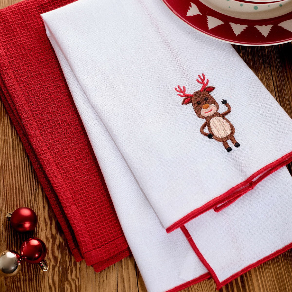 Sada vánočních kuchyňských utěrek | RUE | s výšivkou a lemem | 2*45x65 cm | 706721