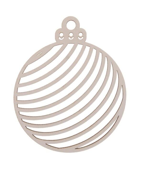 Drewniana bombka w paski biała. Średnica 8cm, wysokość całkowita 10cm. W opakowaniu 3szt číst celé