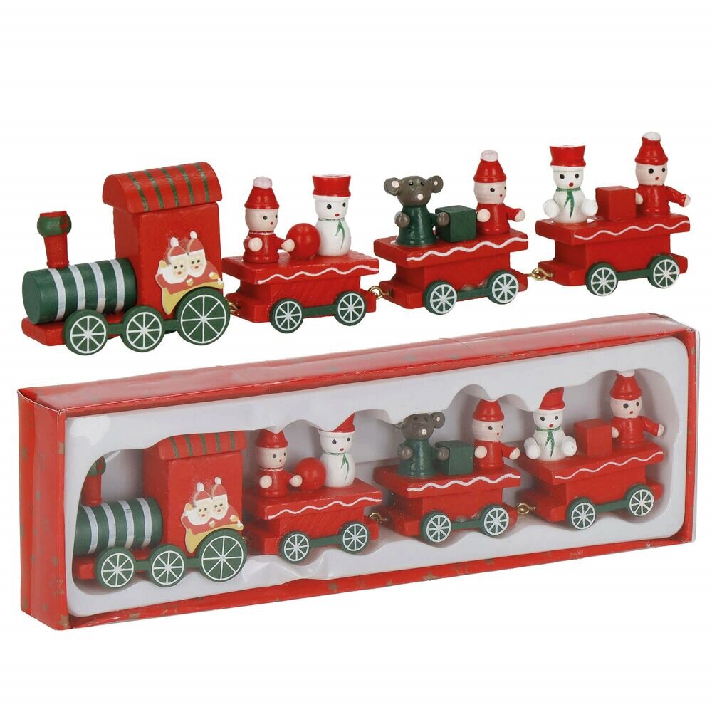 Dřevěný vláček 21x5cm červeno-zelený, vánoční dekorace