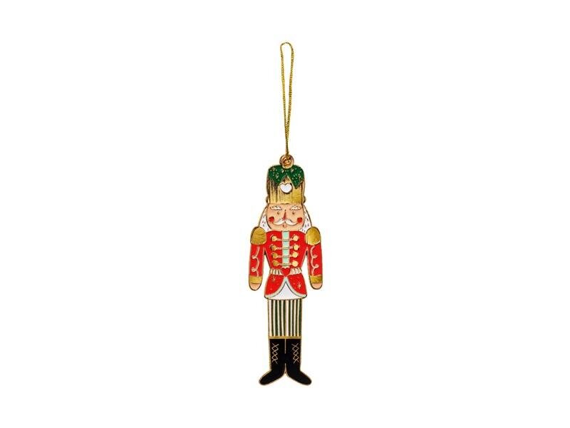 Zawieszka dekoracyjna Dziadek do orzechów wykonana z metalu z kolorowym nadrukiem, wymiary ok. 3 x 10 cm.