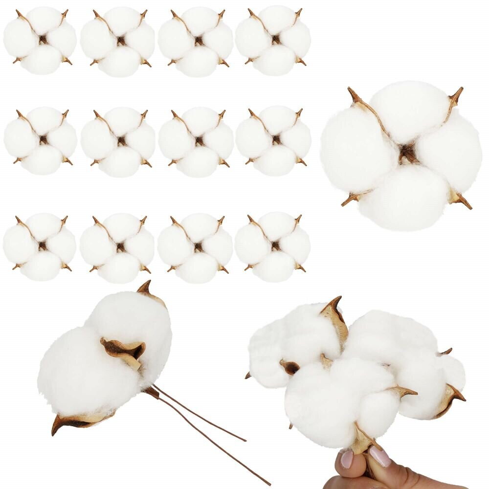 Sada 12 květů bavlny o průměru 5 cm dodá vašim vánočním aranžmá dotek přírody a jedinečného šarmu. Díky realistickému vzhledu a snadnému připevnění drátky je tato dekorace ideální pro kreativní tvoření a zdobení interiéru i vánočního stromku.