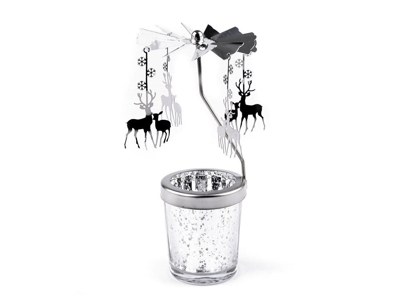 Otočný vánoční svícen / kolotoč - 1 ks - 1 stříbrná jelen