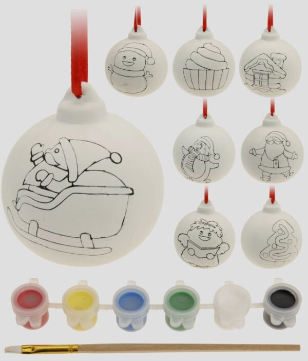 Ozdoba vánoční 2 ks+ barvičky 6 ks+štětec
