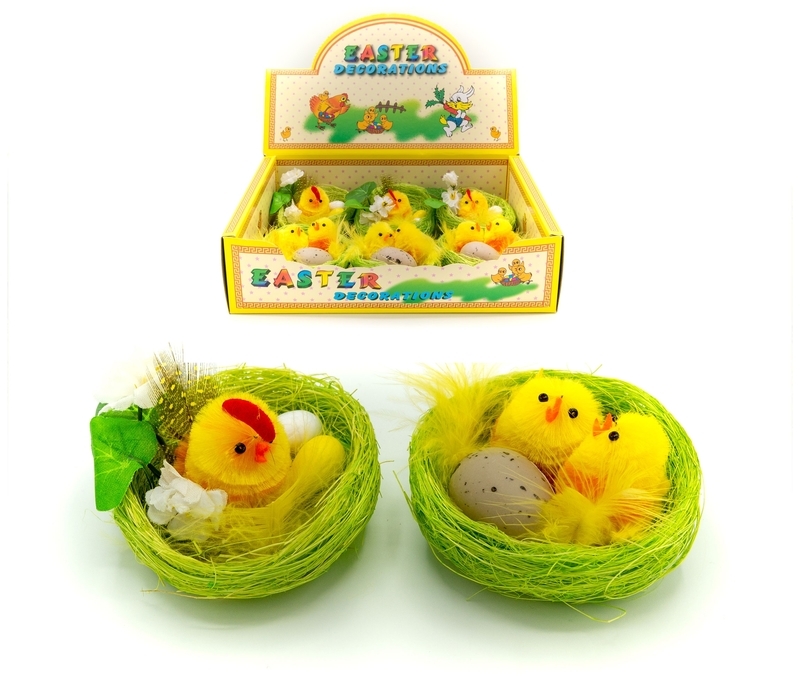 Kurczaki wielkanocne w gniazdkach 7 cm. . 1 box zawiera 6 szt., 2 wzory. sp. pakowania 1/60 op. číst celé