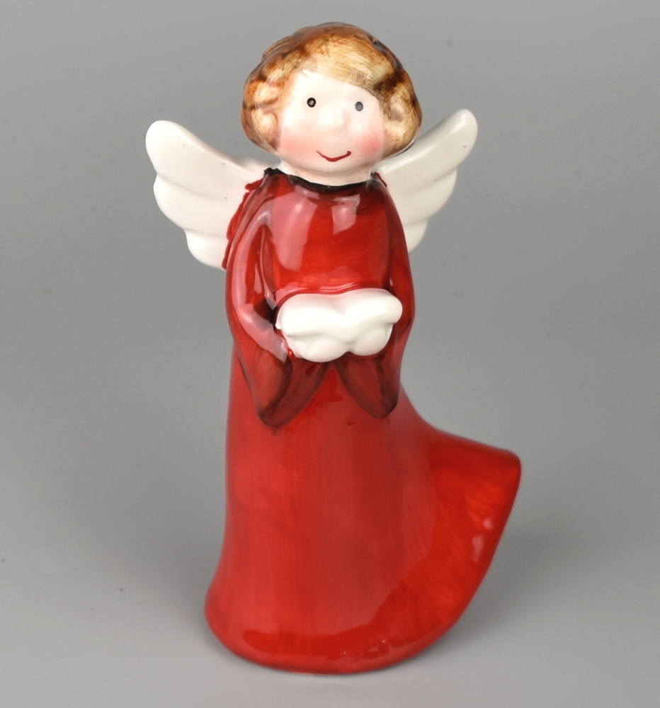 Anděl keramický s knihou v rukou. Barva červeno-bílá. číst celé