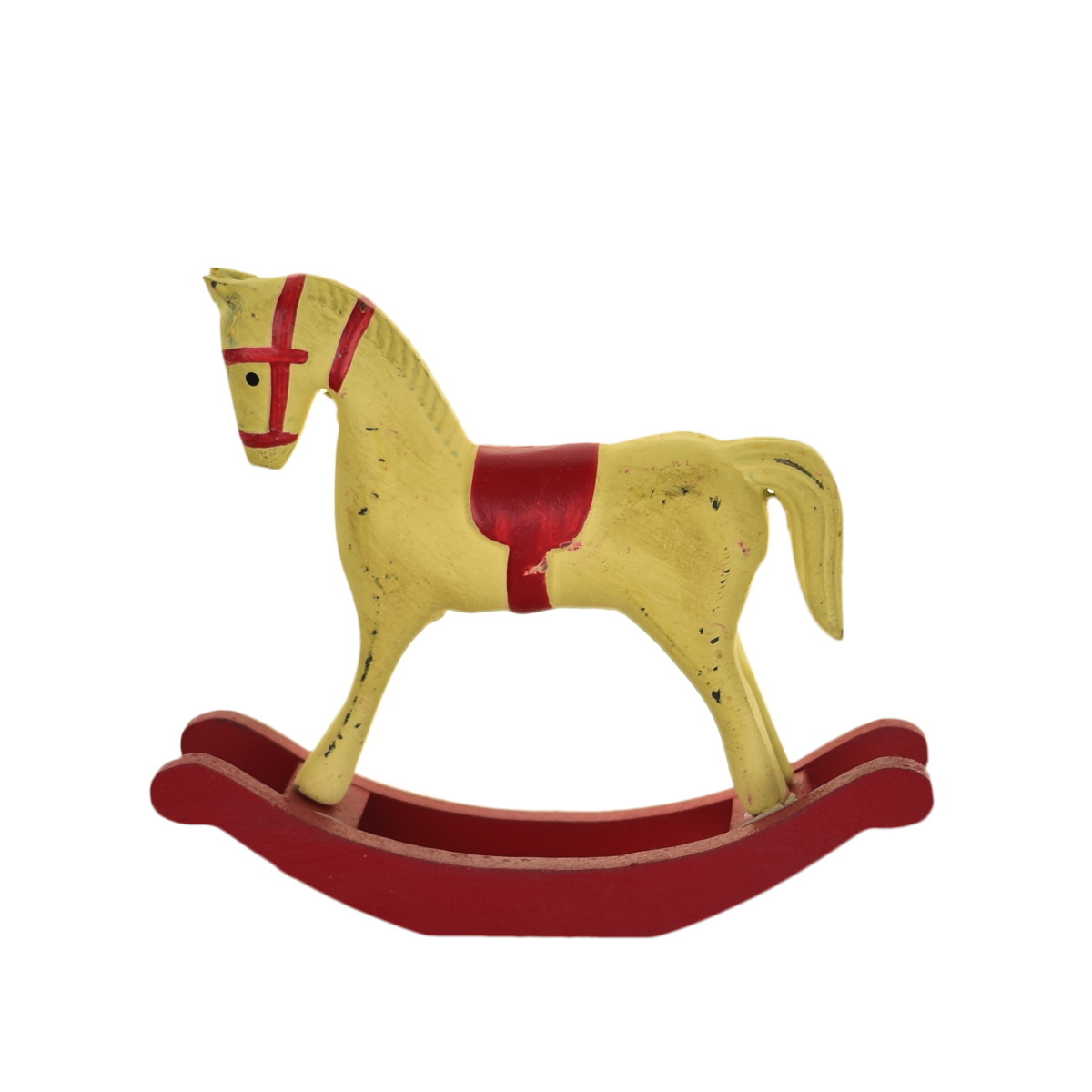 Tento elegantní koník měří 11x13 cm (výška x šířka) a je vyrobený z kvalitního dřeva. Vaše dítě si užije hodiny zábavy při houpání na tomto pevném a bezpečném koníkovi.