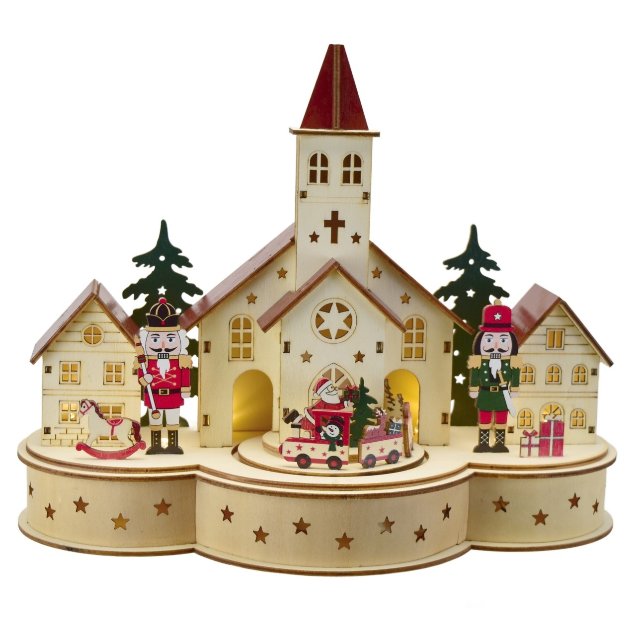 Objevte kouzlo Vánoc s naší dřevěnou vesničkou o rozměrech 21x30 cm! Tato okouzlující dekorace vyrobena z kvalitního dřeva přináší do vašeho domova jedinečnou atmosféru. Vesnička je vybavena LED diodami, které osvětlí každý detail.