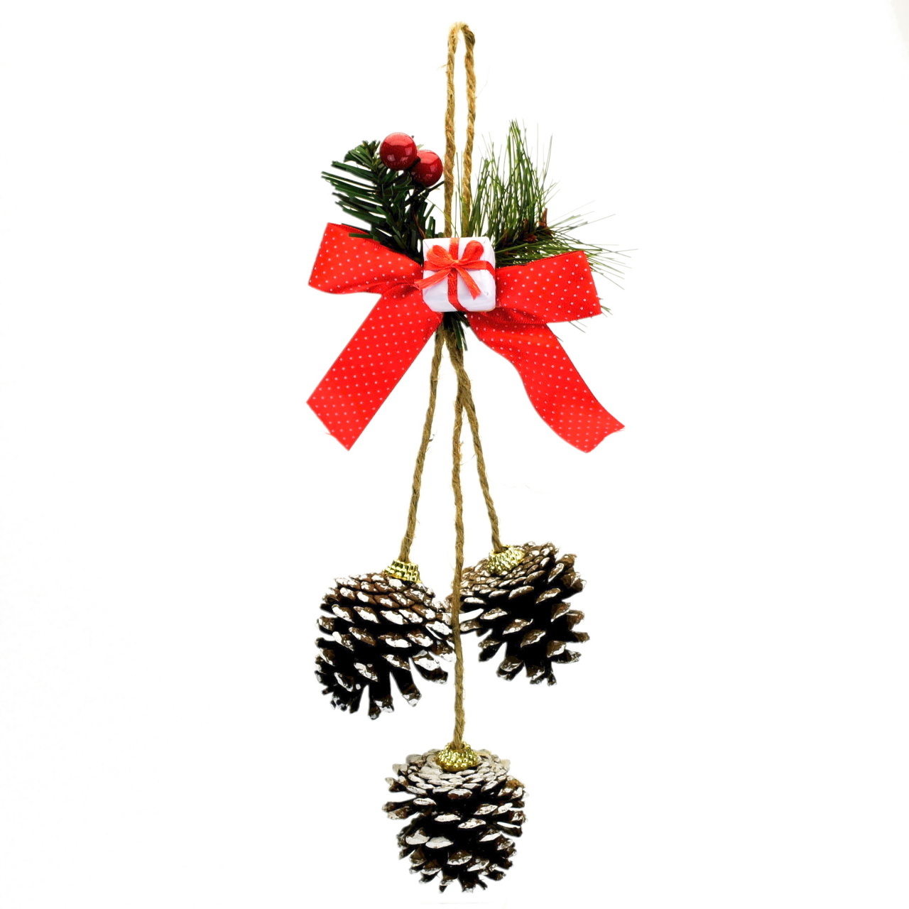 Zamysleli jste se někdy nad tím, jak ozdobit váš domov během svátků? Máme pro vás tu správnou věc! Tyto závěsné šišky s mašlí jsou dokonalým doplňkem pro váš vánoční stromek nebo interiér. Každý závěs je zdoben třemi šiškami, které jsou skládané kolem jedné velké červené mašle. Aby toho nebylo málo, jsou také zdobeny zelenými větvičkami, aby získaly úplně autentický vzhled.