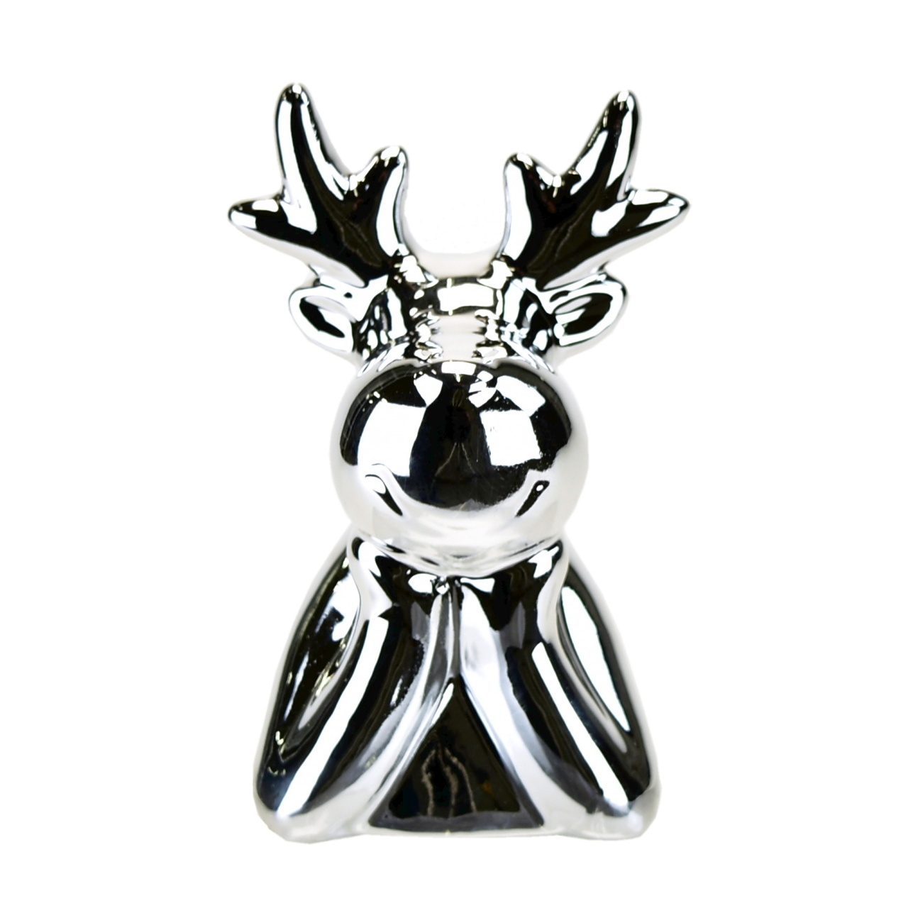 Nechte vánoční atmosféru zazářit s tímto nádherným sobíkem! Povrch této keramické sošky je pokryt lesklou stříbrnou barvou, která dodává elegantní a sofistikovaný vzhled. Vysoká kvalita keramiky zaručuje trvanlivost a krásnou estetiku.