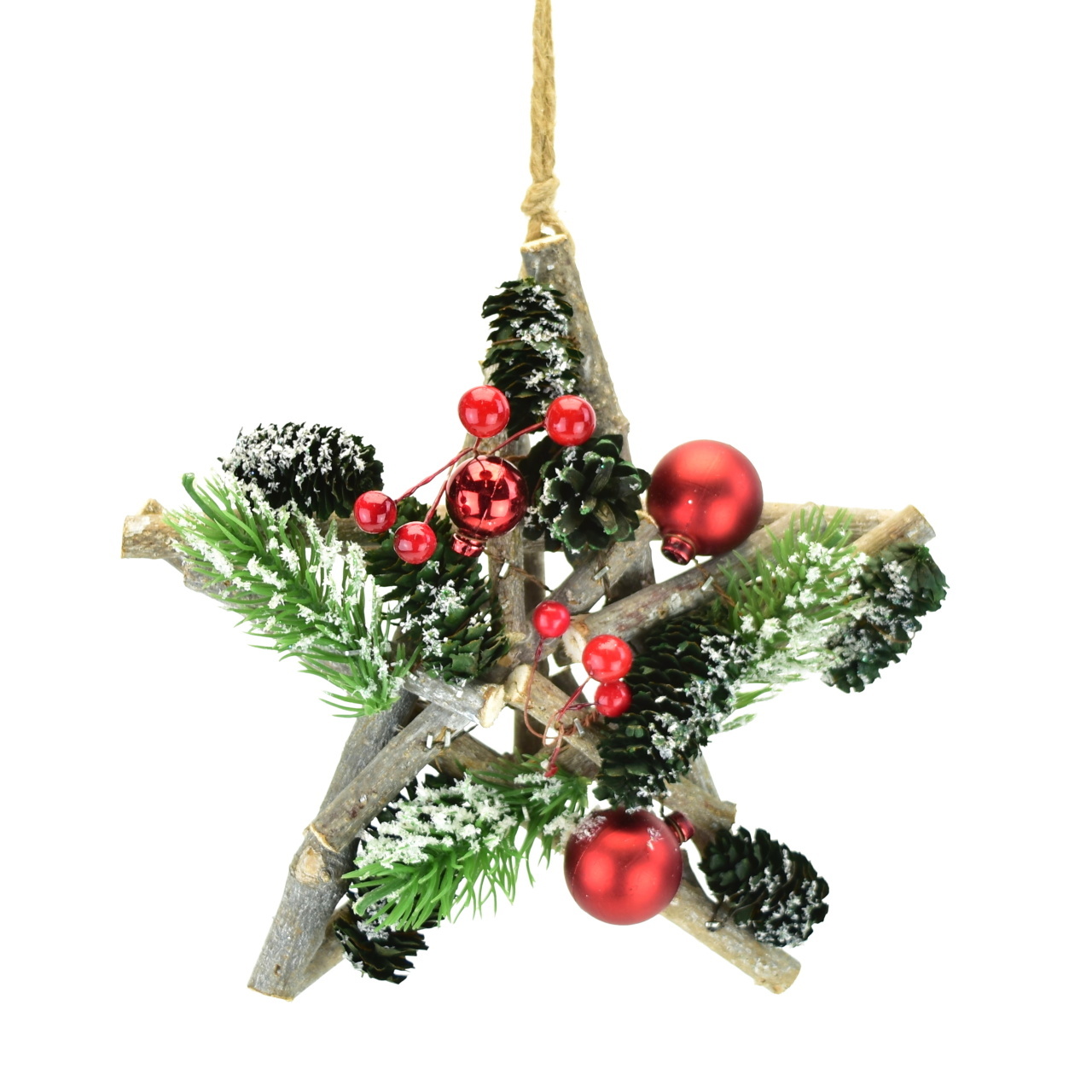 Obohaťte svůj interiér o jedinečný dotek přírody s naší 3D hvězdou o velikosti 20 cm, která se stane skvělou ozdobou jakéhokoliv prostoru. Tato dřevěná hvězda je zpracována s precizností a láskou k detailu, a je oboustranná, což ji umožňuje vyniknout z jakéhokoli úhlu pohledu. Zdobena zelenými šiškami, větvičkami a červenými kulličkami v kombinaci s bezinkami, přináší do vašeho domova nádech přírody a útulnosti. Disponuje praktickým provázkem na zavěšení, takže ji snadno umístíte na váš oblíbený stanoviště.