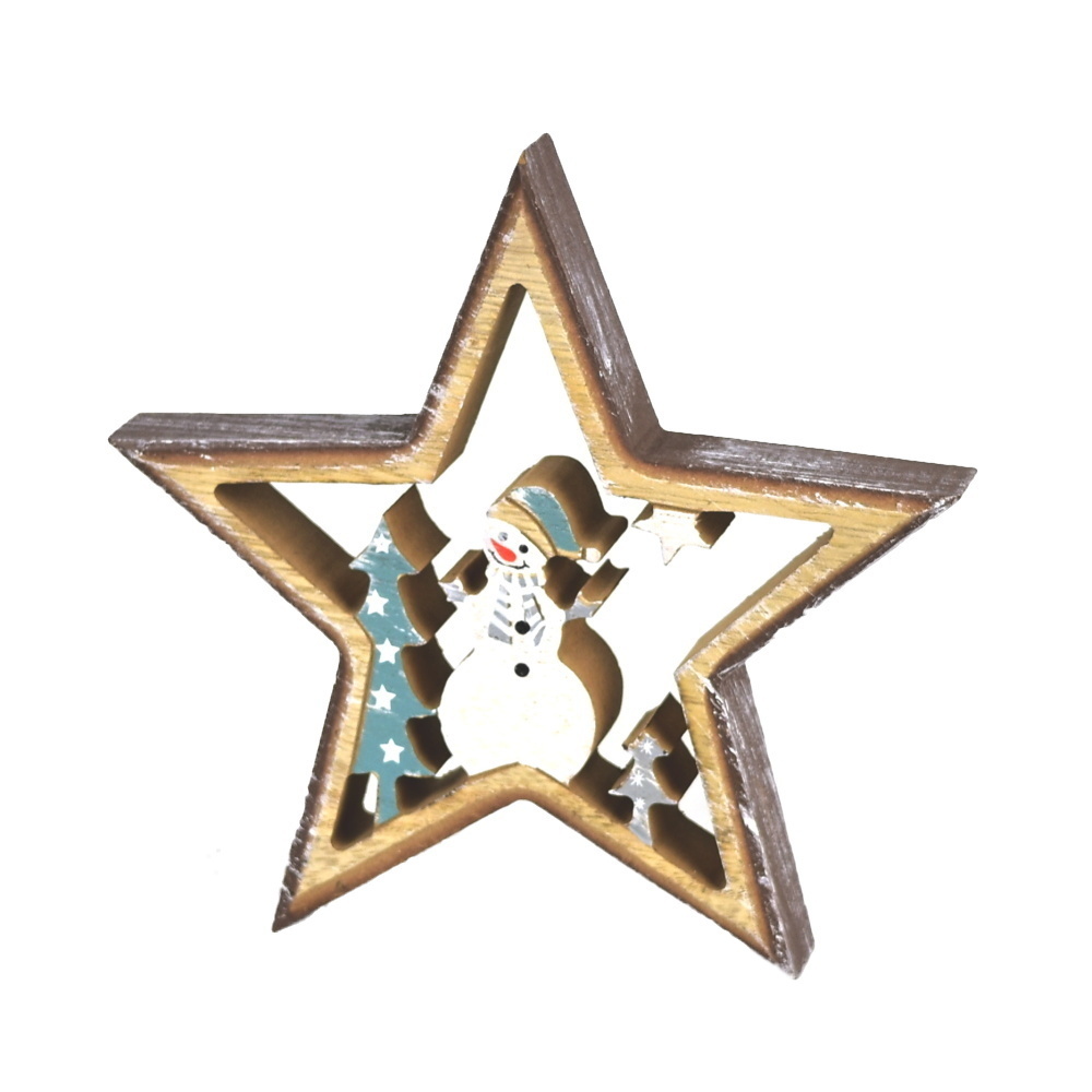 Dovolte nám představit vám naši hvězdu dřevěnou se sněhulákem 15 cm - dokonalý doplněk pro vánoční atmosféru! Tato kouzelná dřevěná hvězda je ozdobena roztomilým sněhulákem a stromkem, který okamžitě přinese úsměv na vaše rty.