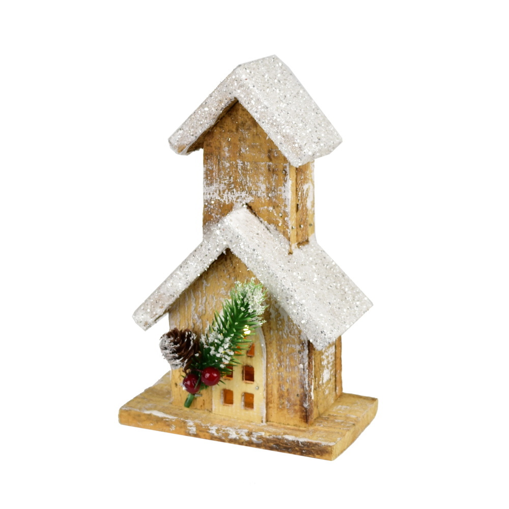 Dřevěný kostelíček s LED osvětlením je ideální výzdoba pro váš domov během vánočních svátků. Výška kostelíčku je 19 cm, šířka 6,5 cm a délka 12 cm. Stačí jenom zapnout dvířka a vnitřní LED osvětlení vytvoří útulnou atmosféru pohodlného zimního večera. Kostelíček má sněhově bílou střechu a zasněženou větvičku s bezinkami, které z něj udělají okamžitý vánoční hit. A nejlepší je, že baterie jsou součástí produktu, takže nemusíte hledat vhodné baterie. Stačí jen vložit 2x LR42 baterie a váš kostelíček bude připravený na záření. Tento kostelíček je vyroben z kvalitního dřeva, které přidává přírodní a rustikální vzhled. Skvěle se hodí do vánočního dekoru v každém domě. Přidejte si tento kouzelný kostelíček s LED osvětlením do svého košíku a vytvořte si tu pravou vánoční atmosféru!