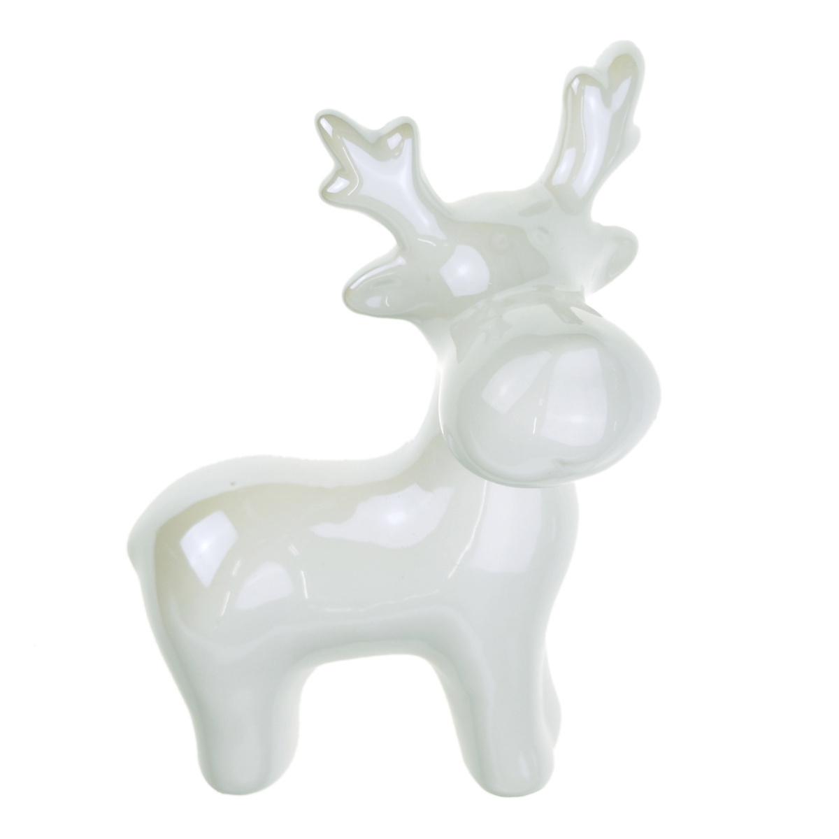 Keramický sob bílá perleť. Výška 13,4 cm, šířka 5,8 cm, délka 8,8 cm. číst celé