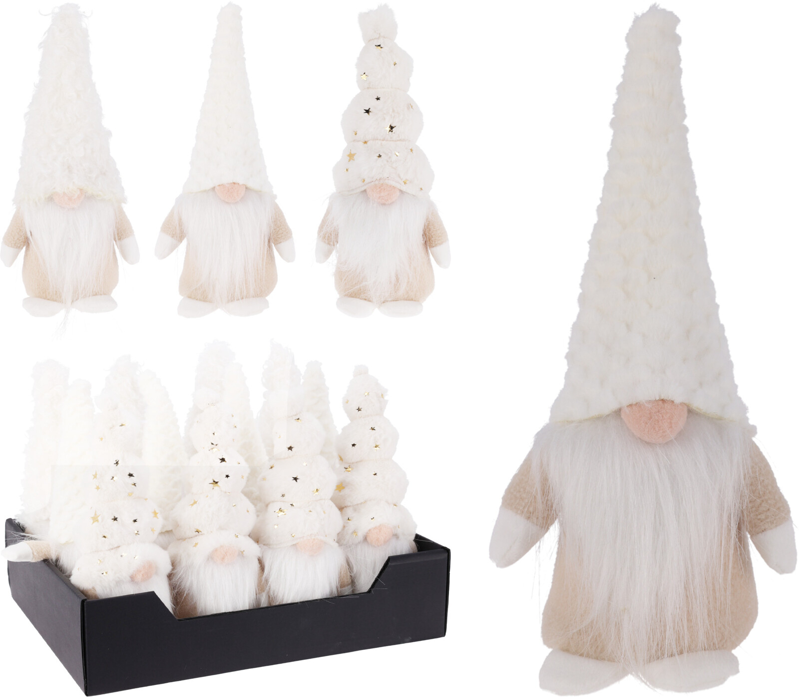 DEKORACJA GNOM 22CM Z KAPELUSZEM KREMOWY