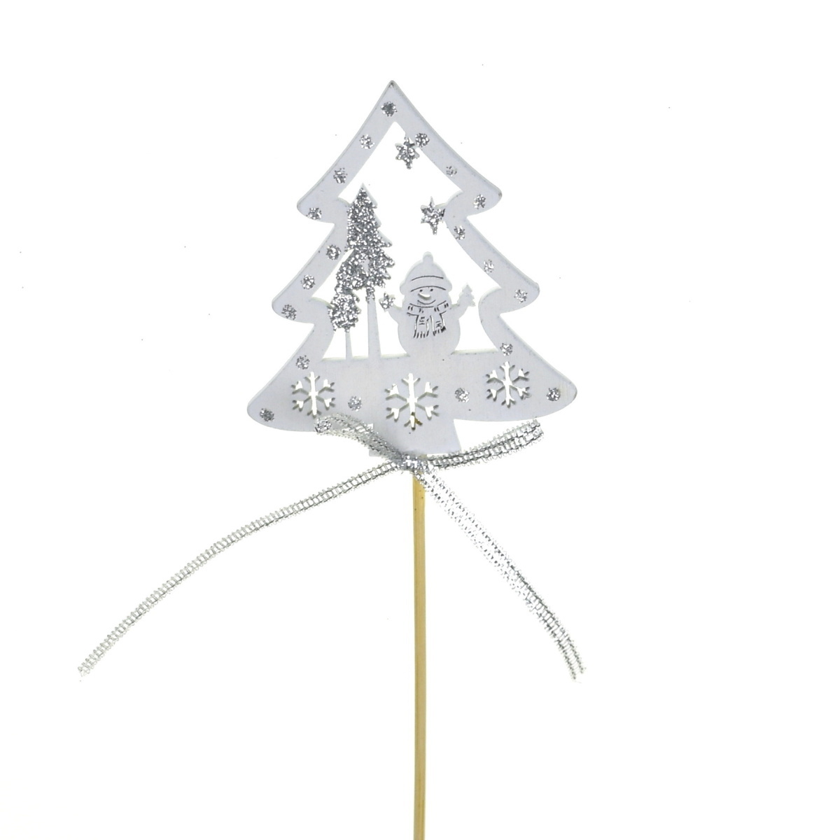 Vytvořte tu pravou vánoční atmosféru s naším dřevěným bílým zápichem stromečku se sněhulákem! Tento jedinečný dekorativní kousek přináší do vašeho domova nádech kouzla a radosti. Ozdobený stříbrným glitrem, náš zápich jistě zaujme každého. Jeho velikost je ideální, s 30 cm výškou včetně špejle, což usnadňuje umístění na vánoční stromeček nebo jako součást unikátní dekorace na stole. Motiv stromečku a sněhuláka má rozměry 8x7 cm, což z něj činí skvělou volbu pro zvýraznění vaší vánoční výzdoby.