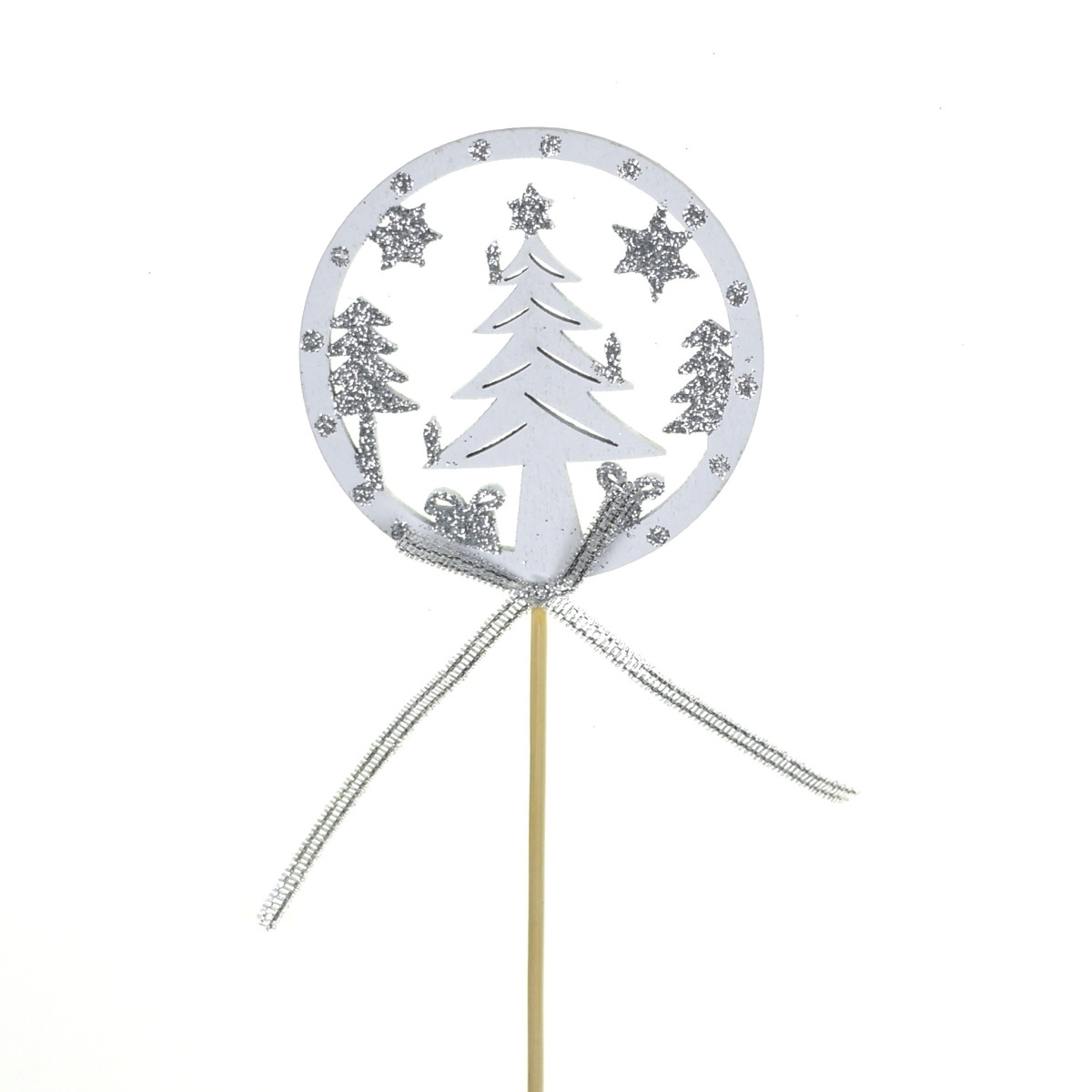 Vytvořte si dokonalou atmosféru během sváteční sezóny s naším dřevěným bílým zápichem ve tvaru stromku s glitrem. Tento krásný dekorativní prvek, o velikosti 30 cm včetně špejle, vynikne jak v interiéru, tak ve venkovních prostorách. Jeho rozměry 8x8 cm poskytují ideální prostor pro zviditelnění v každé výzdobě. Nechte se okouzlit jeho jemným leskem a přidejte šmrnc k vašim vánočním dekoracím.