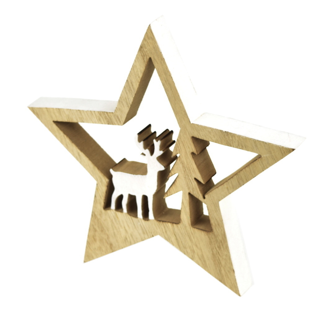 Vytvořte si doma pravou vánoční atmosféru díky této stylové dřevěné hvězdě s motivem srnky. Je to dekorace, která rozzáří váš prostor a přinese kouzlo zimních svátků do každého koutu vašeho domova.