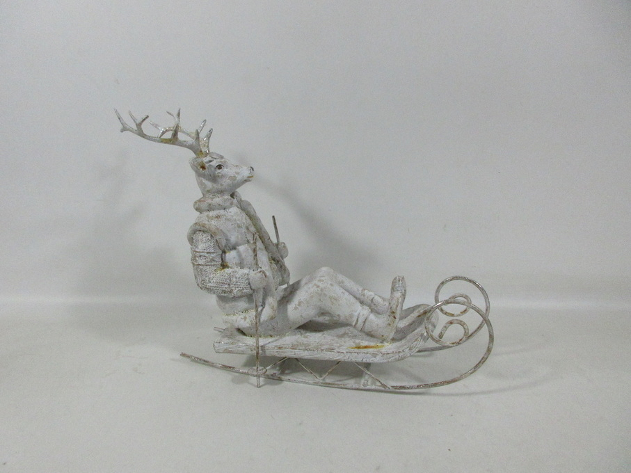 Figura renifera na sankach z kolekcji SANTA LILA, o wymiarach 29,5 10,5 23,5 cm, to wyjątkowa dekoracja świąteczna wykonana z trwałego i starannie wykończonego poliresinu. Utrzymana w eleganckim białym kolorze z przecieranym złotem, emanuje urokiem i radosnym, zimowym charakterem w stylu vintage.Renifer został przedstawiony w dynamicznej pozie . siedzący lub zjeżdżający na sankach, co nadaje figurze lekkości i humorystycznego akcentu. Złote przetarcia subtelnie podkreślają detale sylwetki, poroża, stroju oraz samych sań, wprowadzając efekt szlachetnego postarzenia, charakterystyczny dla stylu shabby chic.To dekoracja, która doskonale sprawdzi się jako ozdoba komody, stołu, parapetu czy witryny sklepowej. Dzięki kompaktowym, ale wyrazistym rozmiarom, figura renifera na sankach może być zarówno samodzielnym akcentem, jak i częścią większej, spójnej kompozycji świątecznej z innymi figurami z kolekcji SANTA LILA. Wprowadza do wnętrza ciepło, radość i wyjątkowy świąteczny nastrój.