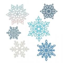Zestaw wykrojników z motywem ażurowych śnieżynek. Składa się z 6 różnych wzorów w różnych rozmiarach.
