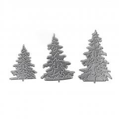 Zestaw wykrojników z motywem świątecznych drzewek. Składa się z trzech elementów przedstawiających choinki z delikatnymi tłoczeniami, w różnych rozmiarach i wzorach.