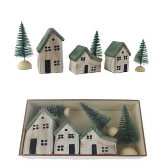 Dekorační dřevěná vesnička v krabičce.Krabička obsahuje 3 domečky, 3 stromečky.Dekorace maji rozměry : 4,2 - 5,6 x 3,5 cm, výšku 5 - 8 cm. číst celé