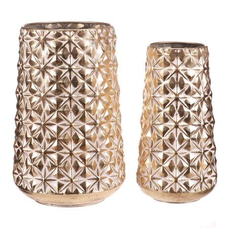 Kovový obal se zdobeným reliéfem květinového vzoru v elegantním zlatém odstínu vnese do vašeho domova slavnostní atmosféru. Sada obsahuje dvě velikosti, které skvěle doplní vánoční výzdobu a dodají rostlinám či přízdobám vznešený základ. Zlatý tón krásně odráží světlo a umocní kouzlo svátečních...