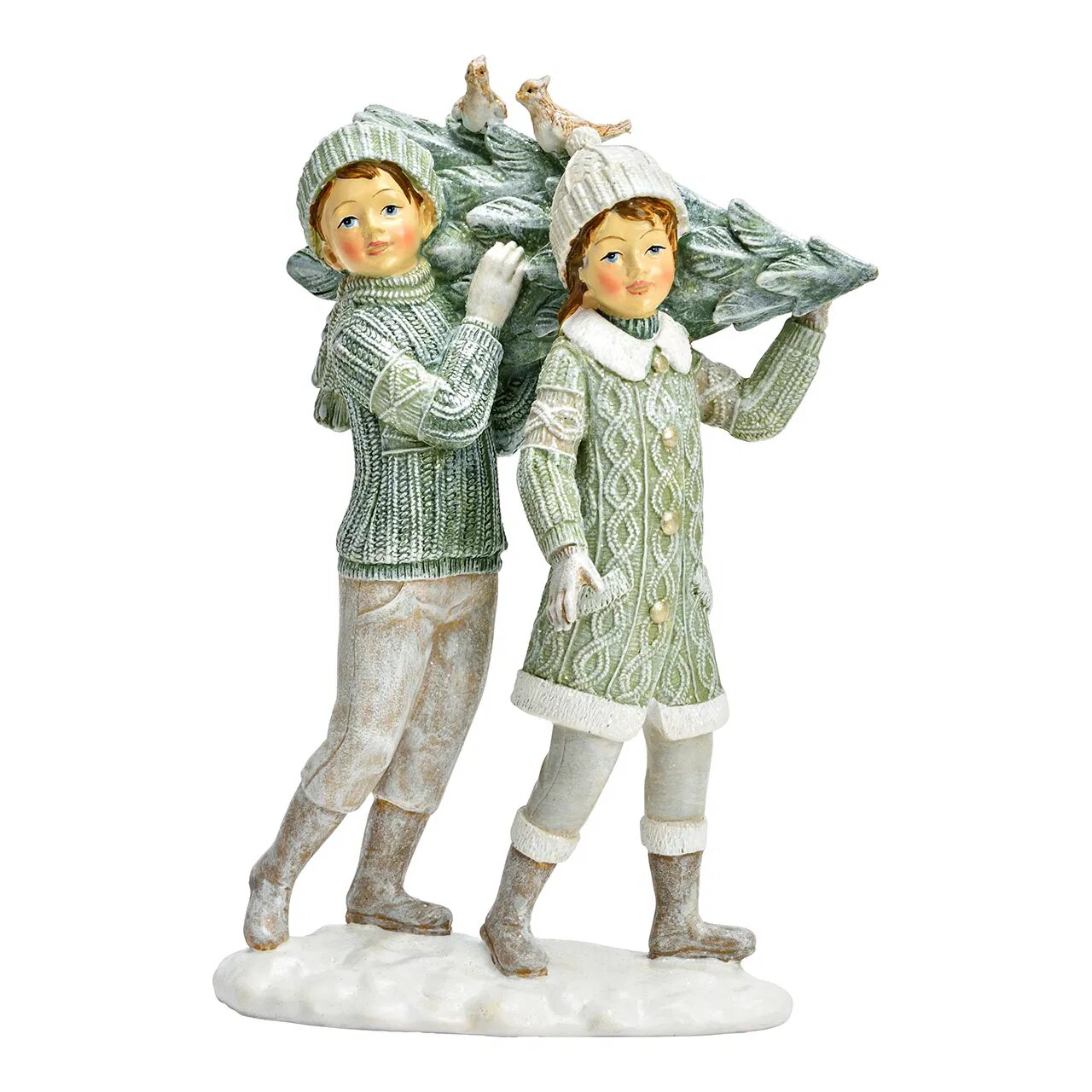 Dívka a chlapec s vánočním stromkem, 22 cm