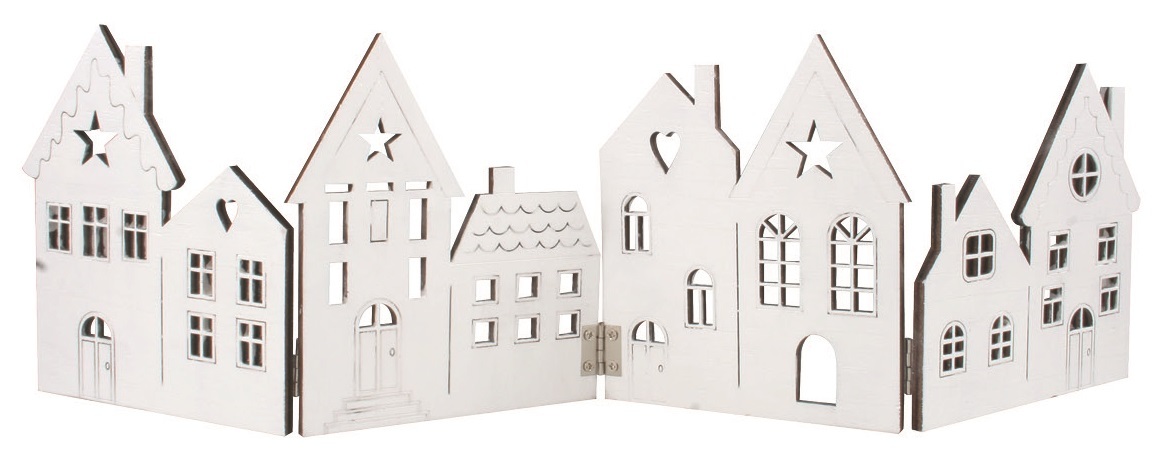 Dřevěné leporelo městečko na postavení bílé 44 x 12,5 x 0,5 cm