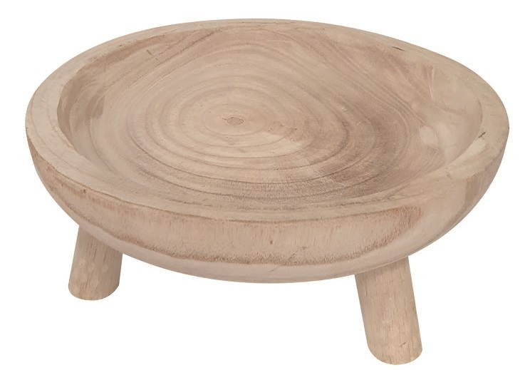 Dřevěný podstavec ø 24,5 x 10 cm Tento dřevěný podstavec s kulatým tvarem a praktickými nožičkami je stylovým a funkčním doplňkem do každého interiéru. Je ideální jako vyvýšená plocha pro svíčky, květiny, vázy nebo jiné dekorace. Díky přírodnímu dřevu a jednoduchému designu se skvěle hodí do rustikálních, skandinávských i moderních prostor. Využití: Perfektní pro vytvoření výškového kontrastu v aranžmá na stole, polici nebo komodě. Využijete ho po celý rok - jako součást sváteční výzdoby, při stolování nebo pro běžné každodenní dekorování. Díky nožičkám působí lehce a elegantně. Vlastnosti: průměr: 24,5 cmvýška: 10 cmmateriál: dřevo PavlovnieZajímavost:Tento podstavec je vyroben ze dřeva stromuPavlovnie, někdy nazývaného také „císařský strom“. Pavlovnie vyniká mimořádně nízkou hmotností, jemnou kresbou a udržitelným původem - roste velmi rychle, což z ní činí ekologicky šetrný materiál. Její dřevo je přitom pevné, krásné a ideální pro výrobu lehkých, ale odolných dekorací.