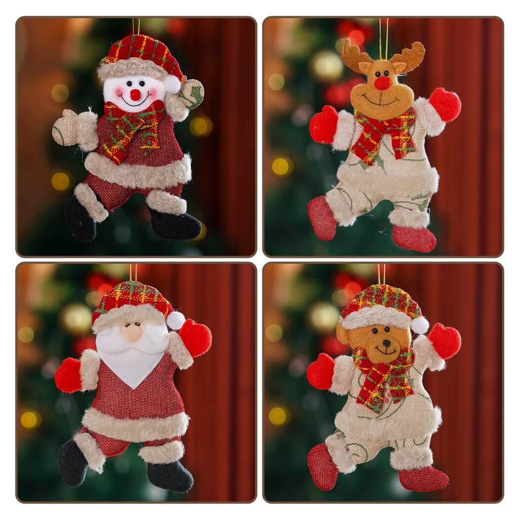 Vánoční závěsné ozdoby s rolničkami v sadě. Každá postavička má cca 21,5 × 9,7 cm a dlouhé nožičky se zvonky. Vyrobené z měkkého materiálu v teplých vánočních barvách. Ideální dekorace na stromek, do okna nebo na dárky.