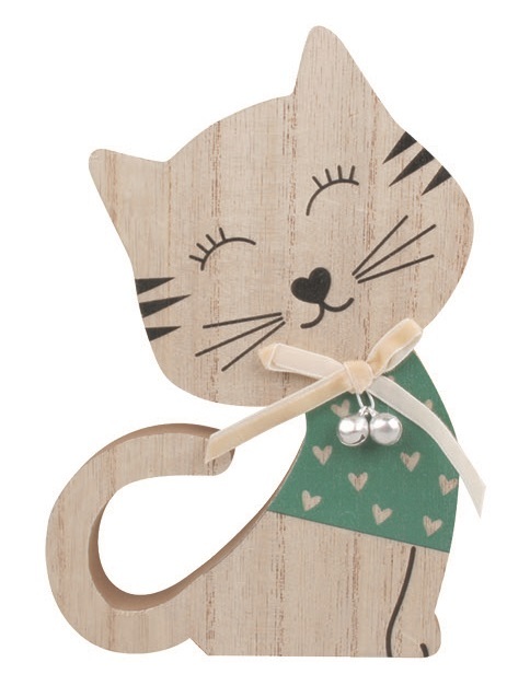 Kočka v zeleném dřevěná na postavení 12 x 18 x 2 cm