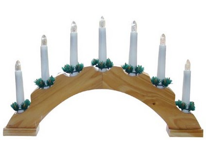 svícen vánoční el. 7 svíček,teplá BÍ,oblouk,dřev.přírodní,do zásuvky