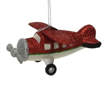 Vánoční ozdobička na stromeček ve tvaru letadla. Materiál - sklo. Rozměry - délka 12 cm, šířka 10 cm.