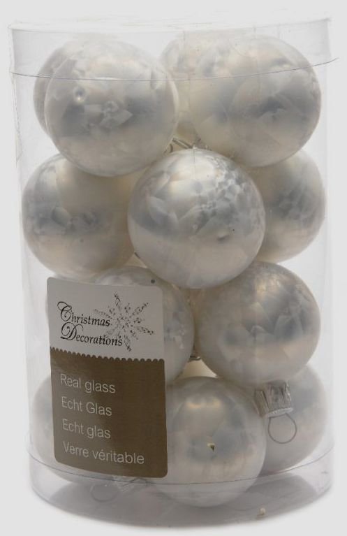 Skleněné Vánoční kuličky s povrchem díky kterému vypadají jako by byly kuličky pokryté mrazem. Barva - bílá. 16 ks kuliček v balení. Materiál - sklo. Rozměry - průměr 3,5 cm.