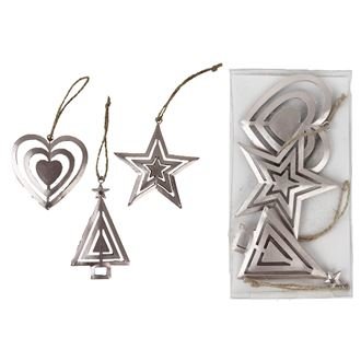 Sada kovových dekorací k zavěšení. Sada obsahuje 3 dekorace. Rozměry : 5 - 7,5 x 0,6 cm, výška 6 - 8 cm. Materiál : kov. číst celé