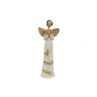 Dekorační anděl. Rozměry : 4 x 3 cm, výška 15 cm. Barva : kombinace bílá s hnědou. Materiál : polyresin.