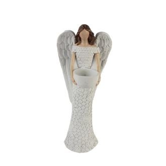 Tento dekorativní svícen ve tvaru anděla je zhotoven z kvalitního polyresinu v bílé barvě. Jeho rozměry 10,5 x 9 cm a výška 25,5 cm zajišťují, že zaujme na každém stole, poličce nebo komodě. Polyresinový materiál je pevný a odolný, což zaručuje dlouhou životnost této krásné dekorace.