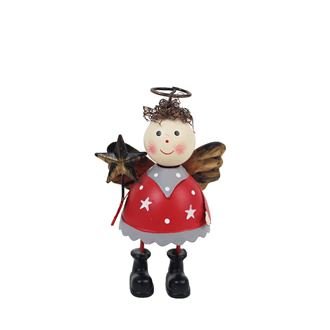 Dekorační kovový andílek. Rozměry : 6,5 x 4,5 cm, výška 11 cm. Barva : kombinace červená, hnědá, šedá. Materiál : kov.