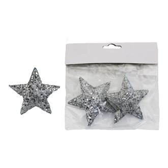 Sada dekoračních hvězdiček. Sada obsahuje 3 hvězdičky. Rozměry : průměr 7,5 cm, tloušťka 3 cm. Barva : stříbrná. Materiál : bavlna. číst celé