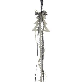 Stromek na zavěšení se stuhou. Rozměry : 11 x 13 cm, celková délka dekorace 69 cm. Materiál : dřevo. číst celé