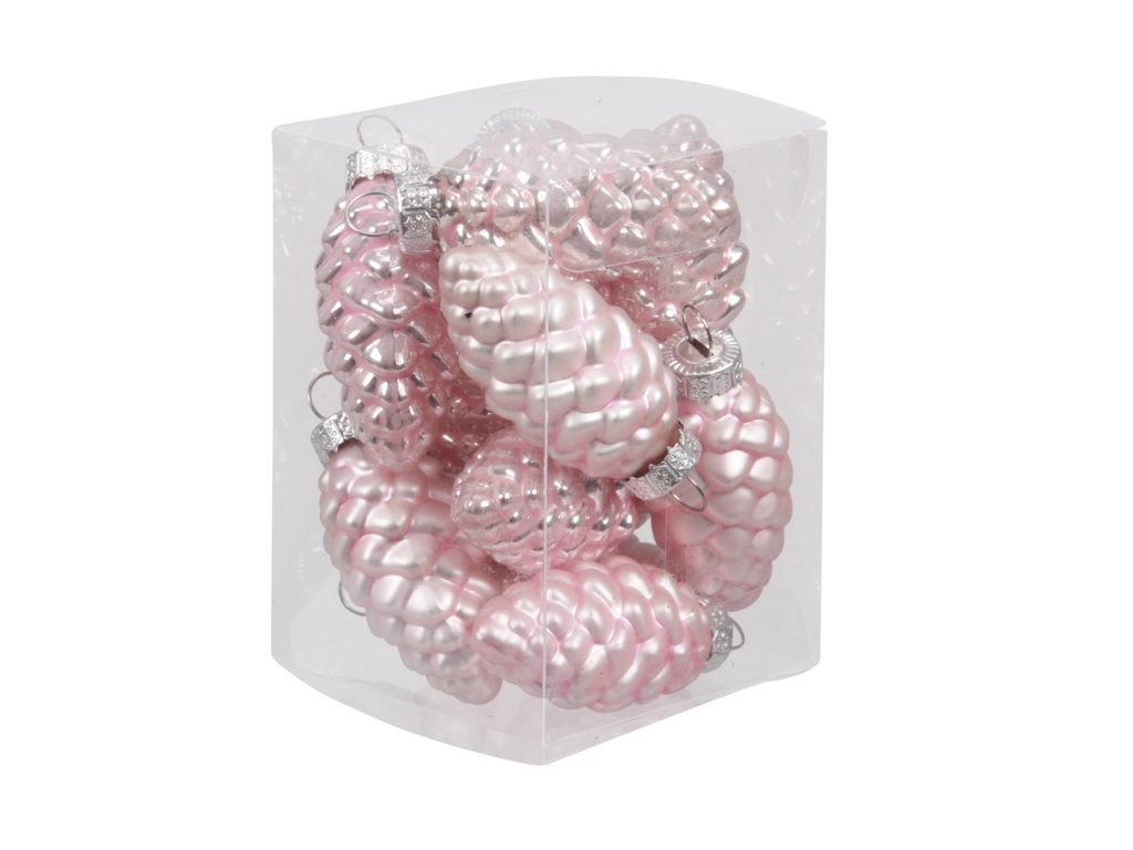 Sada 12 ks skleněných baněk v barvě powder pink. Baňky jsou matné a lesklé.