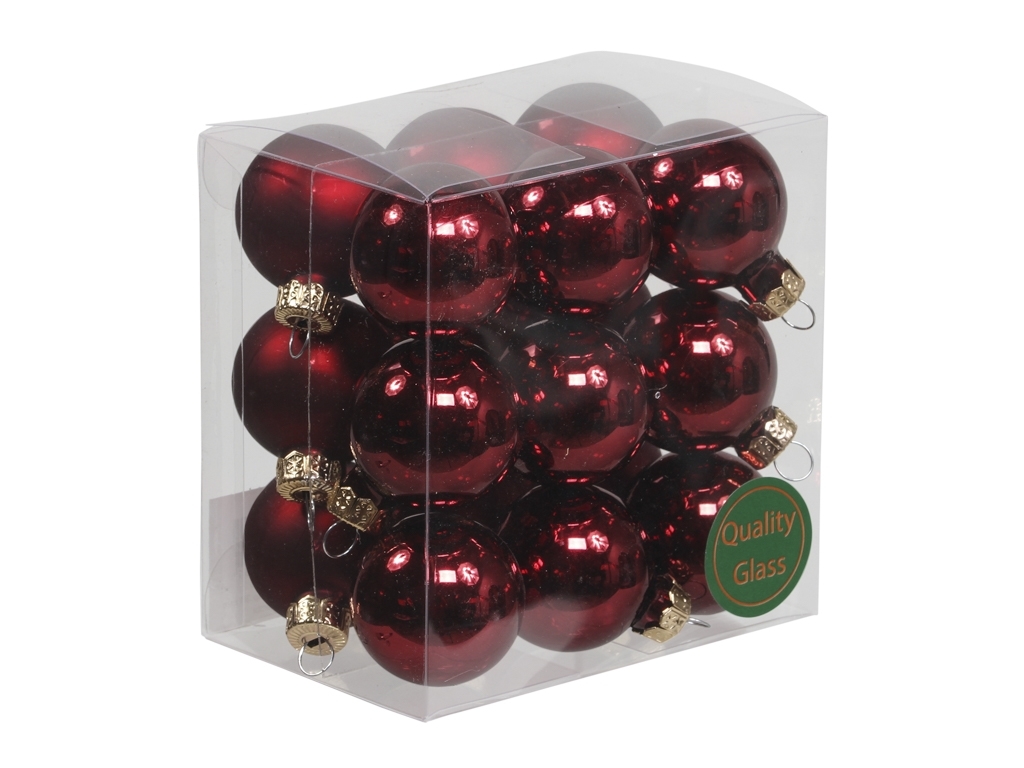 Skleněné baňky tmavě červené 3 cm, sada 18 ks