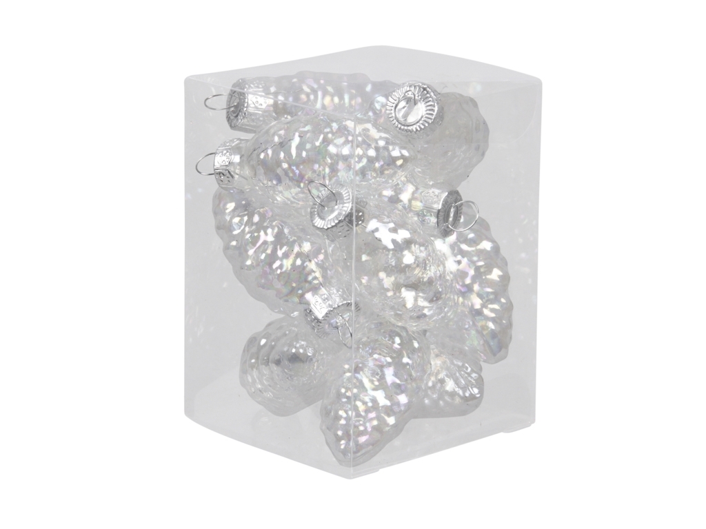 Sada 12 ks skleněných perleťových baněk - šišek. Baňky jsou průhledné s perletí.